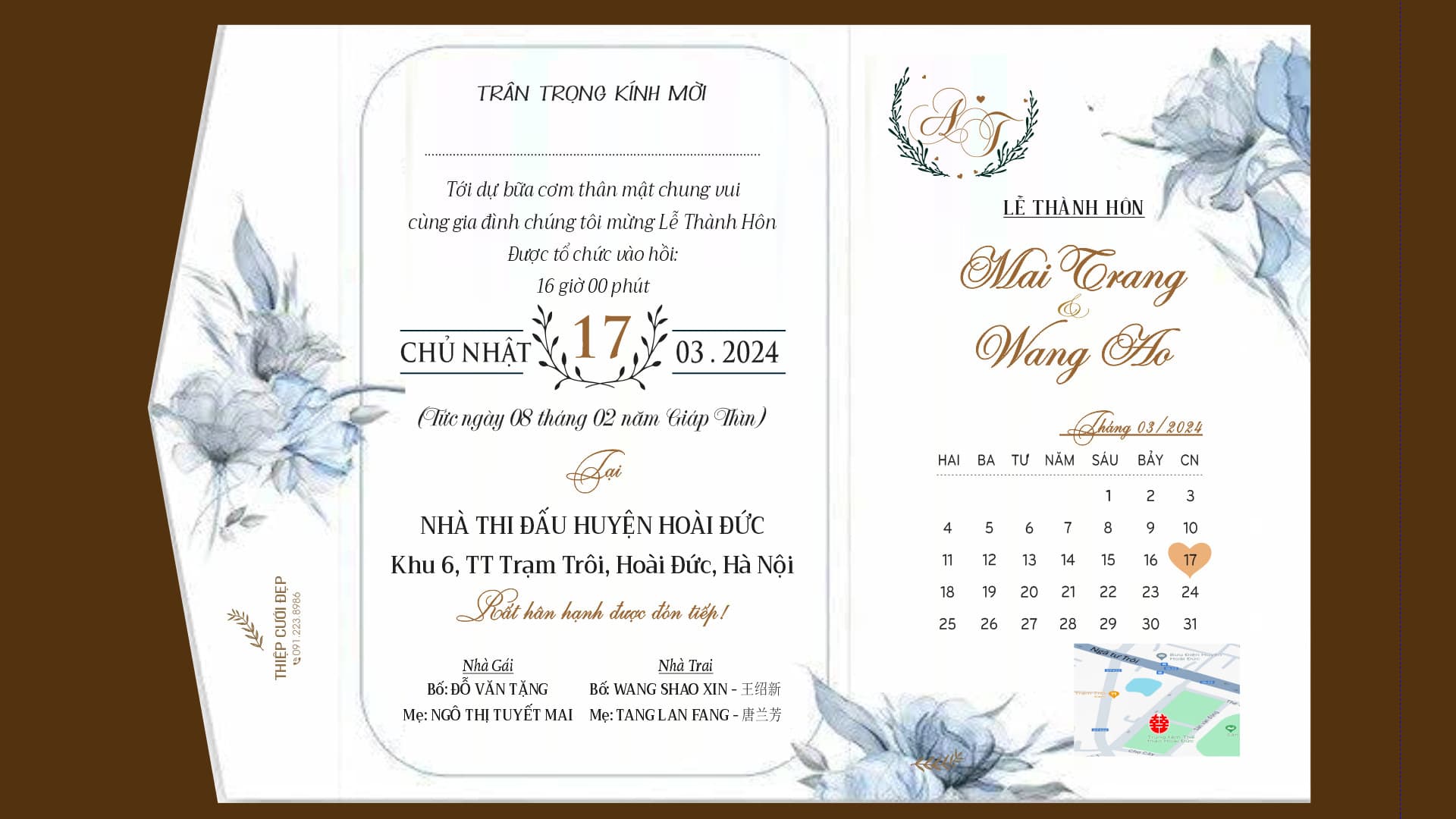 Mr. Wang Ao 王奥 & Ms. Mai Trang 梅莊's love story